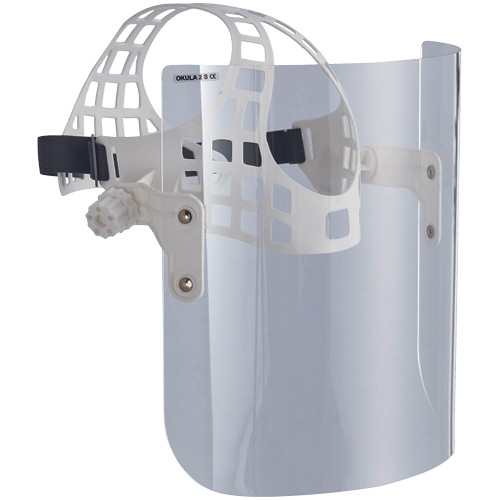 » arcvédő 220 x 290 mm víztiszta 2 mm vastag poli(metil-met) akrilát látómezővel, fejkerettel » az arc és a szemek védelmére alkalmas kis méretű, alacsony energiájú (max. 0,56J) repülő szemcsék ellen » Használható korrekciós szemüveg felett viselve is » EN 166