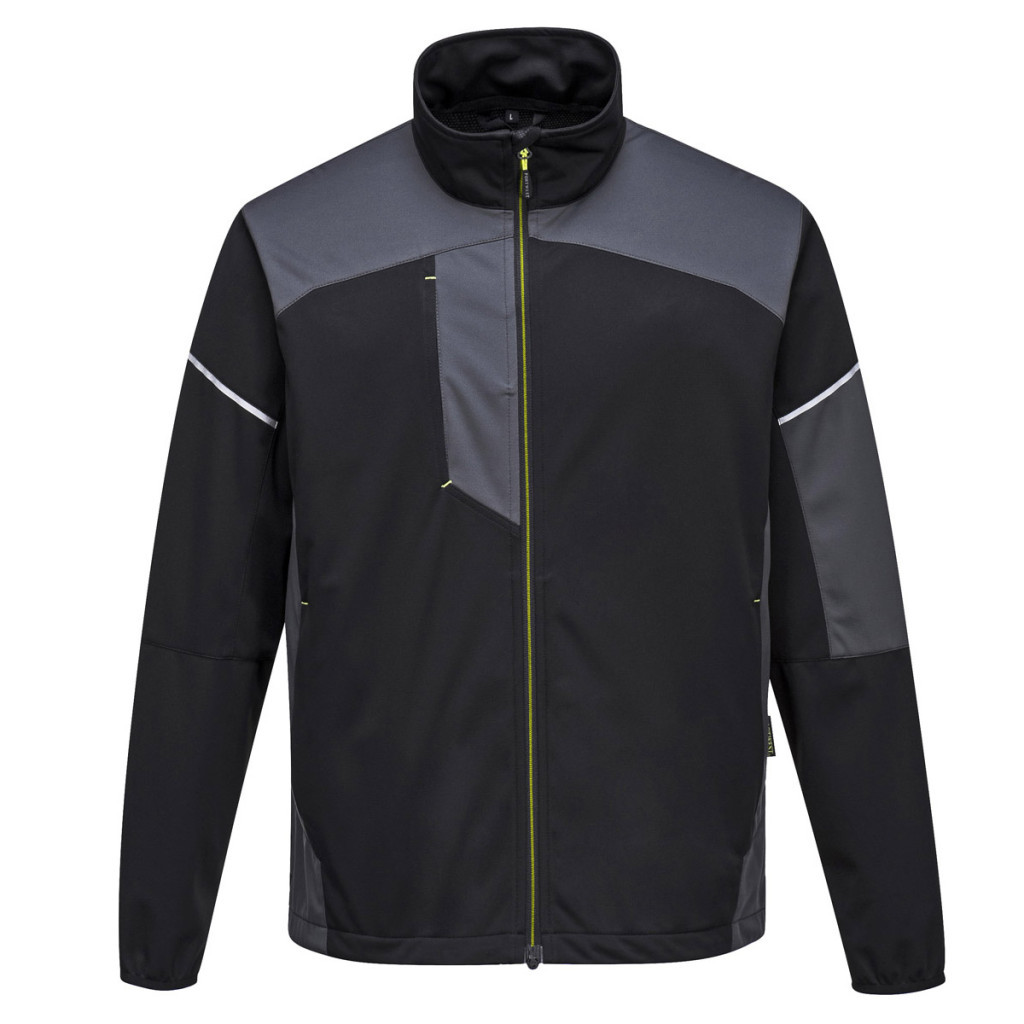 Az Flex Shell kabát prémium minőségű 100% poliészter alapanyagból készül, amely laminált 100% poliészter hálóval van kombinálva (185g). Karcsúsított kialakításával és hosszabb hátrészével kiemelkedően szélálló. Számos praktikus funkcióval rendelkezik, beleértve a négy tárolózsebet, a fényvisszaverő csíkot és az Ezee zippzárt.