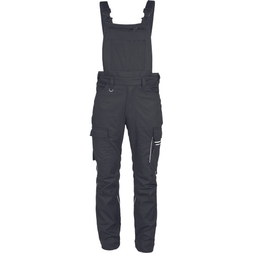 • modern szabású mellesnadrág formázott oldalvarrásokkal, állítható, rugalmas vállpántokkal, nagy, rejtett cipzáras mellzseb, zsebek mobiltelefonnak, tollaknak, rugalmas, szűkíthető derékpánt, megerősítés a térdrészen, rugalmas betétek hátul és az üleprészen, 2 D- gyűrű (nikkelmentes) a derékpánton, 2 első zseb, 2 zsebfedős oldalzseb, a bal száron extra cipzáras zseb (reflex cipzár), többfunkciós zsebek szerszámoknak, 2 farzseb, jobb oldalon zsebfedős, tépőzáras záródással, fényvisszavető részletek