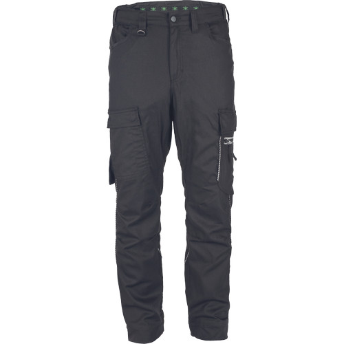 • modern szabású munkanadrág formázott oldalvarrásokkal • rugalmas derékpánt, megerősített térdrész, rugalmas betétek hátul és az üleprészen, 2 D-gyűrű (nikkelmentes) a derékpánton • 2 első zsebbel, 2 zsebfedős oldalzsebbel, a bal száron cipzáras zsebbel (reflex cipzár), többfunkciós zsebek szerszámoknak, 2 farzseb, jobb oldalon zsebfedős, tépőzáras záródással • fényvisszavető részletekkel