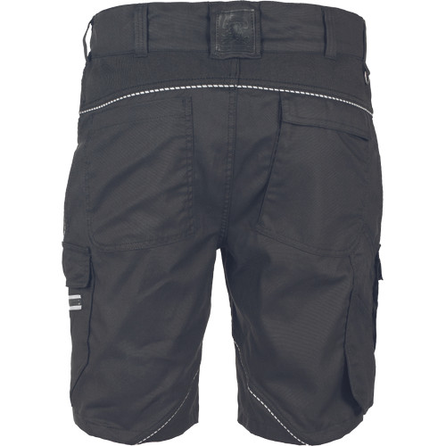 • modern szabású rövidnadrág formázott oldalvarrásokkal, rugalmas derékpánttal, rugalmas betétek hátul és az üleprészen, 2 D-gyűrű (nikkelmentes) a derékpánton, 2 belső zseb, 2 zsebfedős oldalzseb, bal oldalon extra cipzáras zseb, többfunkciós zsebek szerszámoknak, 2 farzseb, jobb oldalon zsebfedős, tépőzáras záródással, fényvisszavető részletek