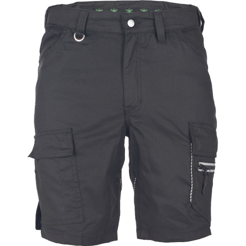 • modern szabású rövidnadrág formázott oldalvarrásokkal, rugalmas derékpánttal, rugalmas betétek hátul és az üleprészen, 2 D-gyűrű (nikkelmentes) a derékpánton, 2 belső zseb, 2 zsebfedős oldalzseb, bal oldalon extra cipzáras zseb, többfunkciós zsebek szerszámoknak, 2 farzseb, jobb oldalon zsebfedős, tépőzáras záródással, fényvisszavető részletek