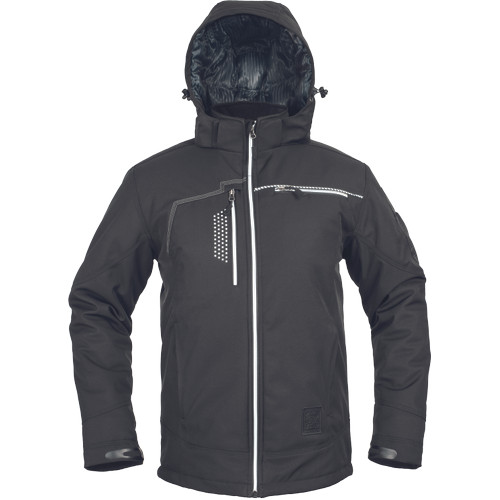 • modern szabású téli softhsell dzseki steppelt béléssel, fényvisszavető cipzárakkal, cipzáras mellzsebekkel • hurok azonosítókártyának a bal mellzseben, jobb oldalon fejhallgató tartóval • Cordura megerősítés a váll- és könyökrészen • fényvisszavető jelzővolt és részletek, kontrasztos varratok, •cipzáras kapucni, cipzáras oldalzsebek