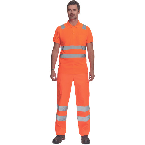 • férfi munkanadrág 7 cm széles fényvisszavető csíkokkal és HI-VIS elemekkel • 2 oldalsó zseb + 1 érmezseb • 2 oldalzseb • 2 hátsó zseb • rugalmas oldalsó betétek a derékon • meghosszabbítható szárhossz