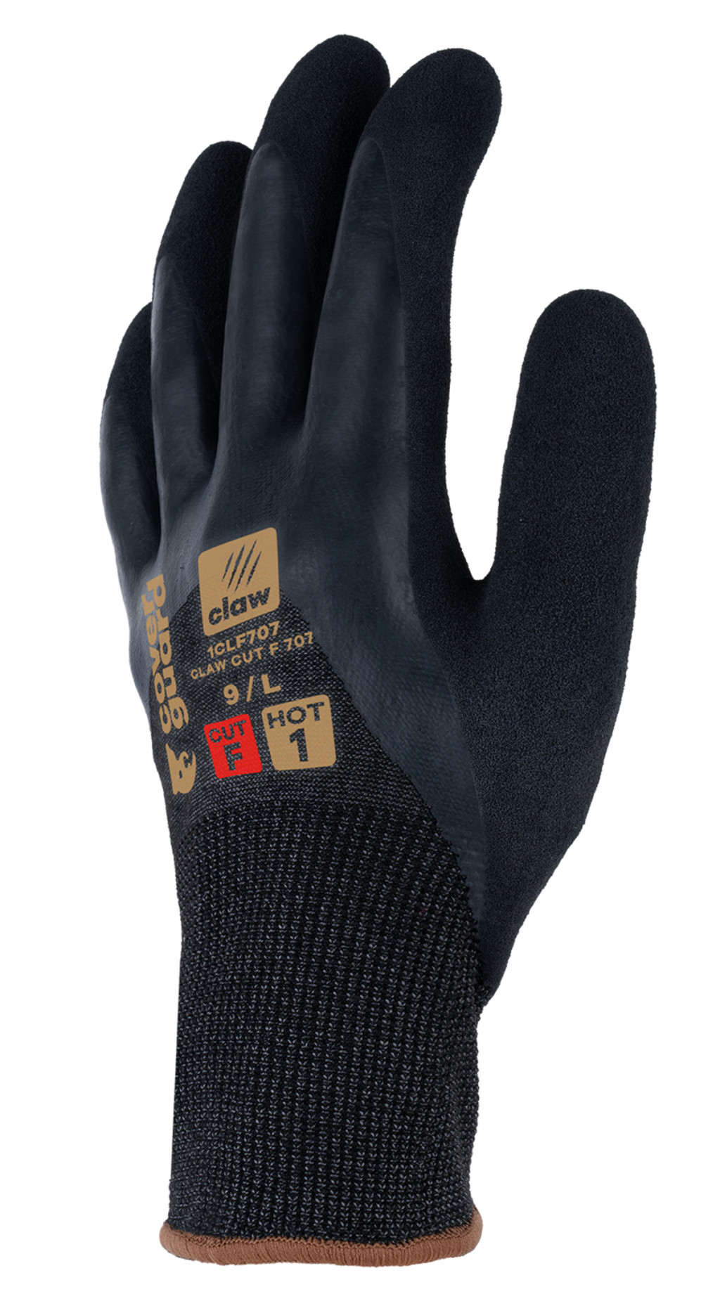 A CLAW CUT termékcsalád egy új generációs vágásálló kesztyű, amelyet a legigényesebb munkákhoz terveztek, magas vágásállósággal (CUT D-től A9-ig), és kiváló komfortot, valamint kivételes ügyességet biztosít minden munkakörnyezetben (száraz, nedves és olajos).A CLAW CUT F 707 modellt finom anyagmozgatási munkákhoz tervezték száraz és nedves környezetben. A magas 18-as kötés, amely egy rendkívül puha és erős üvegszál, poliészter és spandex alapú anyagból készült, kivételes komfortot nyújt, miközben maximális vágásvédelmet biztosít (CUT F, az EN388 szabvány szerint).A dupla rétegű latex bevonat (3/4 sima + tenyér homokszerű felülettel) vízálló, kiváló tapadást és jó fogást biztosít a legigényesebb munkák során száraz és nedves környezetben.A CLAW CUT F 707 újrahasznosított poliészterből készült, RCS tanúsítvánnyal (a termék összsúlyának 16%-a). Üvegszál nélkül.Ez a kesztyű érintőképernyő kompatibilis, így viselése közben is használhatja a képernyős berendezéseket. Sanitized kezelés: megakadályozza a baktériumok és szagok fejlődését.