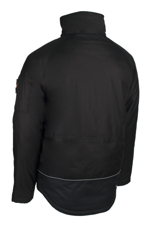 * Külső: RIPSTOP (5mm) : 300g/m2, PVC-vel borított 100% PES alapanyag és 300g/m2 vastag - Belső: 100% poliészter POLÁR (a testen), 180g/m2 vastag 100% poliészter. (a karon) és TAFT BÉLÉS: 100% poliészter. 60 g/m2 vastag * Hegesztett varrások * Gallérba rejtett kapucni + Gumírozott húzózsinór* Magas, polárral bélelt gallér és rejtett kétutas cipzár tépőzáras hajtókával - Raglán ujjak* 1 bebújós mellzseb függőleges vízálló cipzárral, 2 fedett és cipzáras bebújós oldalzseb, 1 karzseb vízálló cipzárral + fényvisszaverő csíkkal, 2 tépőzáras belső zseb - 1 fülhallgató zsinórvezető